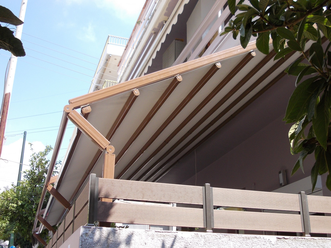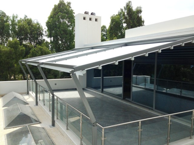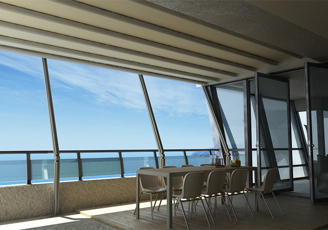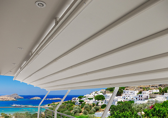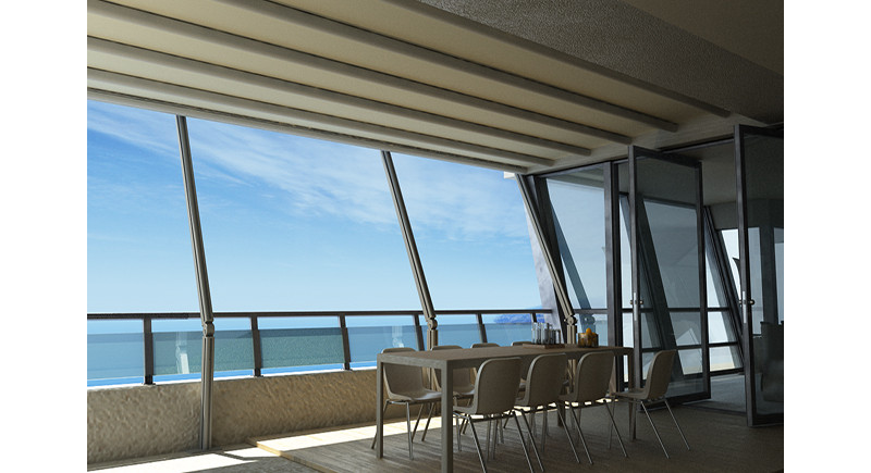 Перголата Sky Motion е сгъваема алуминиева перголна система и PVC повърхност, която покрива външното пространство. Той е идеалният избор за високи балкони и тераси. Благодарение на гъвкавата система за поддръжка предлага предимството на разширяване на покритата повърхност. Правилно сглобени и с правилен наклон могат да издържат на вятър до 100 км / ч.